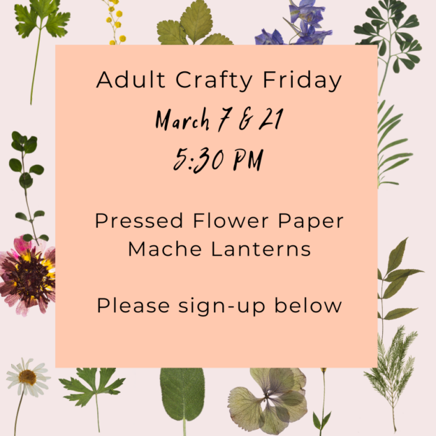 Join us to make Pressed Flower Paper Mache Lanterns! Please sign-up at https://docs.google.com/forms/d/e/1FAIpQLSfukiolMIlLaFBrz4N9RjlUCq74HgyL-nKogX8cXXDVjc4j7w/viewform?usp=sharing