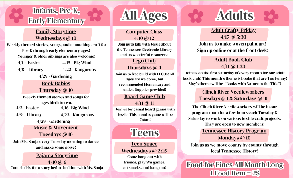 History and Art Classes, Book Clubs, & much more!